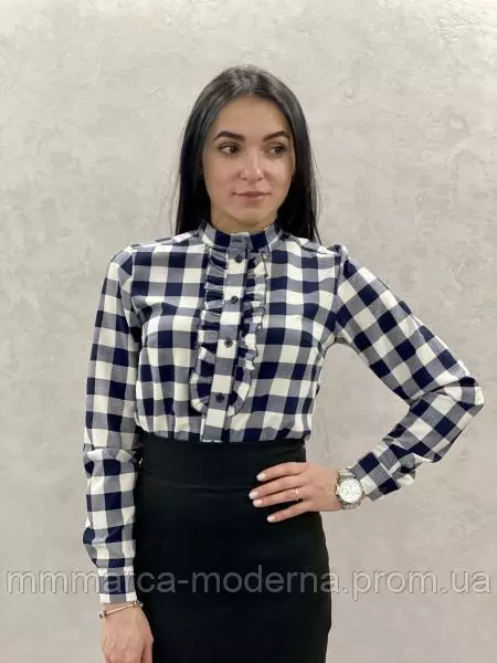 ТМ Marca Moderna Женская рубашка Дана клетка черно-белый цвет