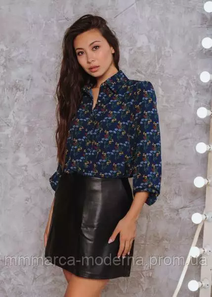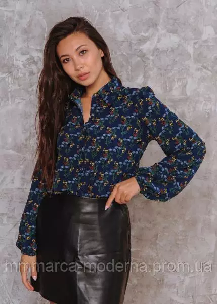 ТМ Marca Moderna Женская рубашка Рита цвет темно-синий с цветочным принтом