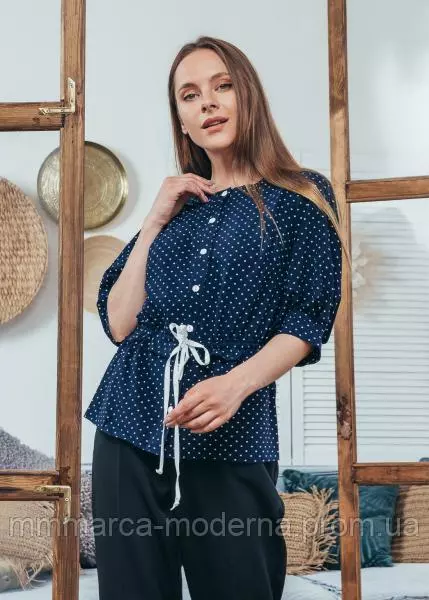 Женская блузка Герда Marca Moderna темно-синяя с принтом мелкий горох