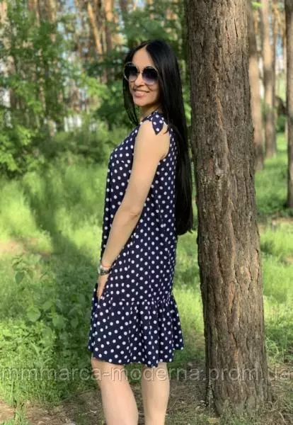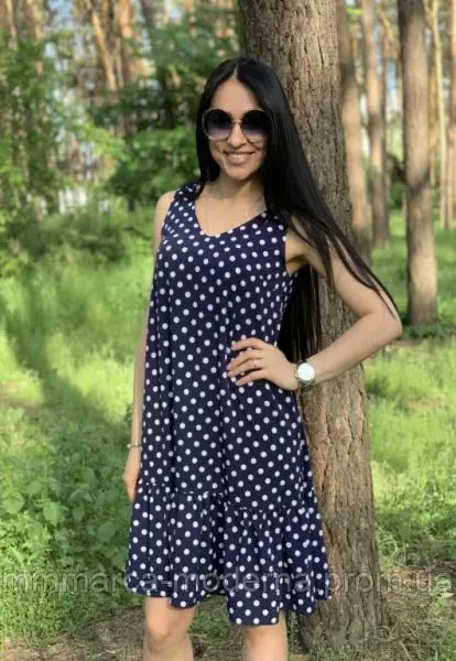 Женский летний легкий сарафан Стефи Marca Moderna темно-синий в горошек
