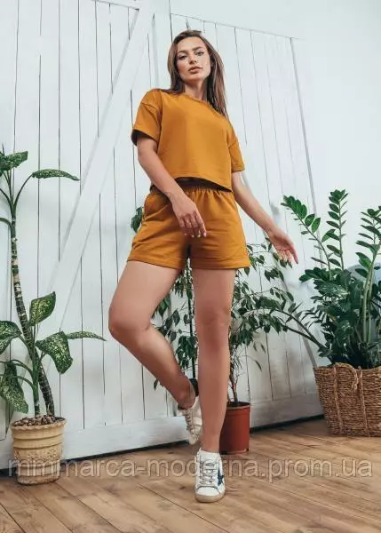 Женский стильный легкий летний костюм Спорт Marca Moderna горчичный