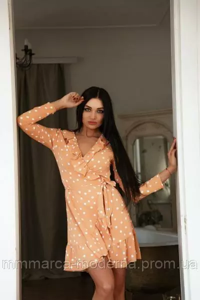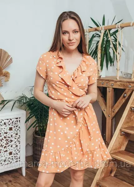 Женское летнее модное платье Эми Marca Moderna персиковое в горошек