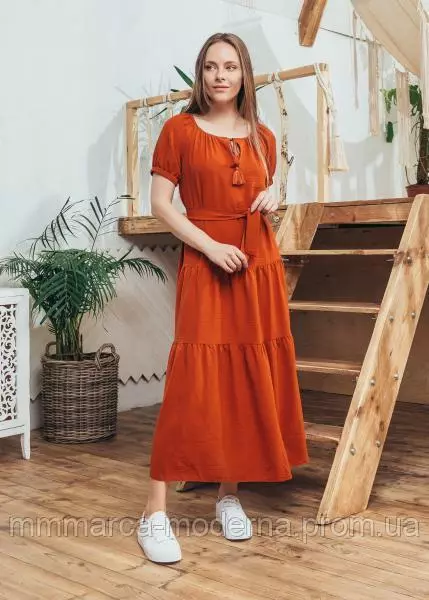 Женское модное длинное платье из хлопка Marca Moderna теракот горчица белый