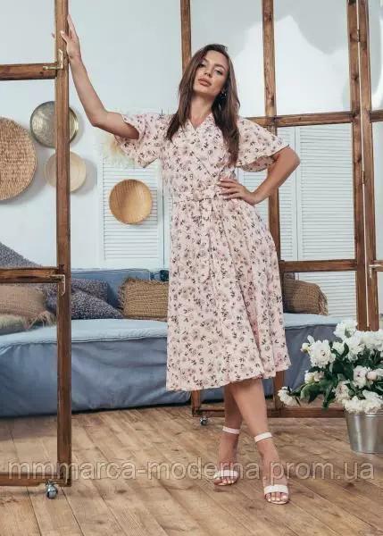 Женское модное летнее платье Мия Marca Moderna светло-розовое с цветочным принтом