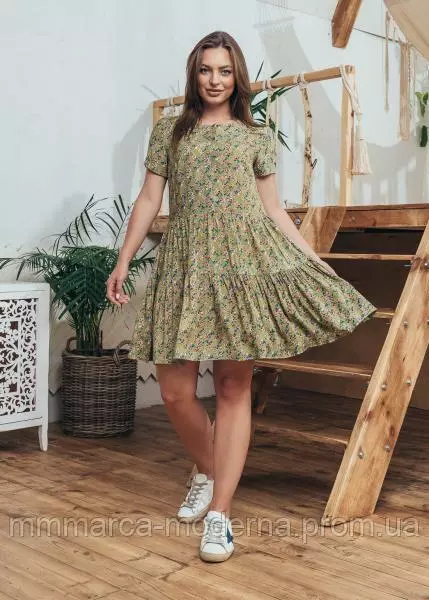 Женское повседневное летнее платье Селин Marca Moderna оливковое с цветочным принтом